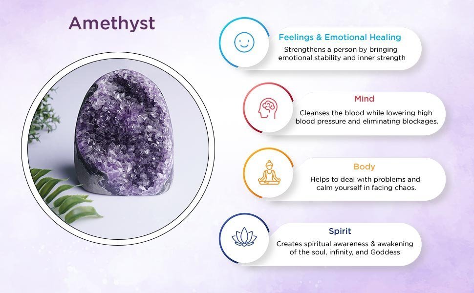 - Material: Crystal Cluster | Stone: Amethyst | Color: Purple